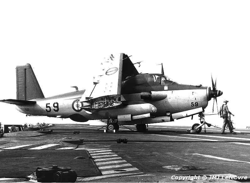 Pilot is on board of " 59 " for long and various checks before plane's first flight also await his two other crew members and finally a clearance to install over one of the two Clemenceau catapults.