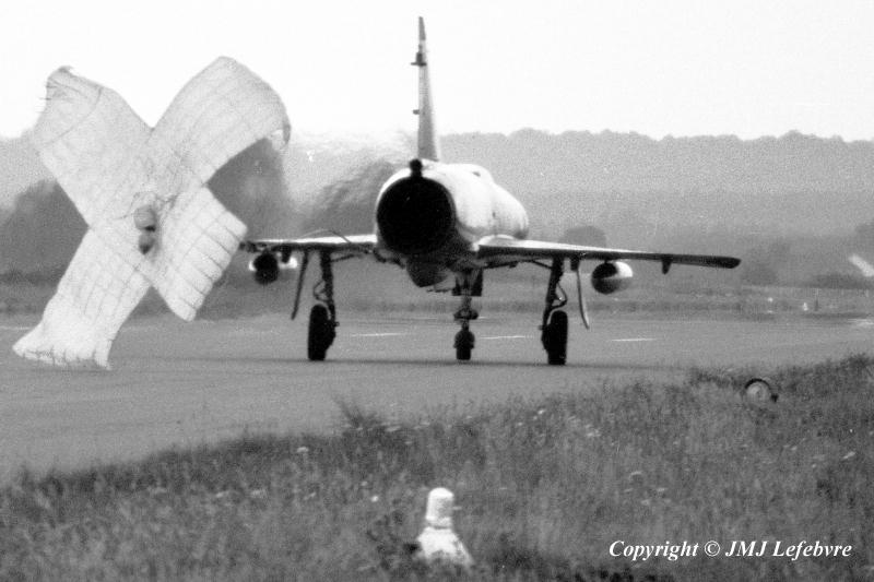Drag chute quits 4-AJ either due to a non intentional release by pilot or to an incident of fastener inside the chute housing. Note that the belly adapter beam is not very protuberent relatively to the rear queel.