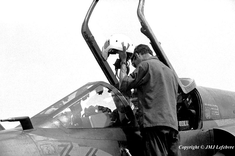 Pilot being installed inside Mirage III RD N° 355 33-TD.