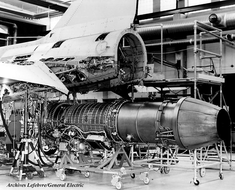 Caption: 12 juin 1987: le General Electric GE F404/RM12 en cours d'installation sur le Saab JAS 39 Grippen.