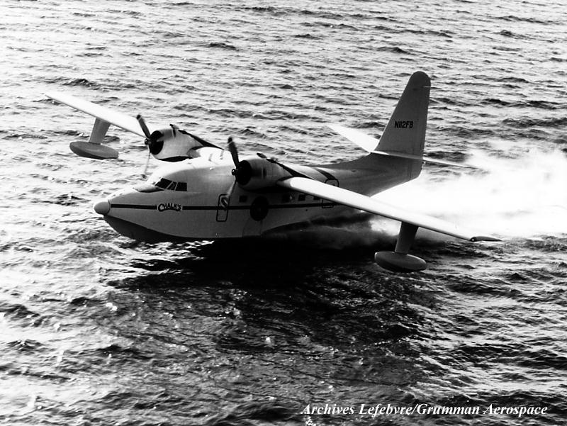 Grumman G-111 Albatross. Un amphibie dérivant duHU-16B de secoures en mer et ca pable de transporter jusqu'à 28 passagers sur de petites lignes commes celles des îles Caraibes.