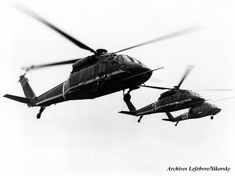 Trio d'hélicoptères UTTAS Sikorsky YUH-60A en cours d'essais constructeurs intensifs à Stratford, Connecticut, en vue d'une évaluation préliminaire par l'U.S. Army quiétait prévue en décembre 1975.
