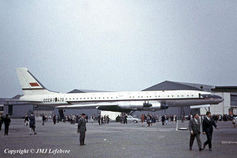 Engin tout aussi fascinant qu'un bombardier B-36, le Tupolev Tu-114 Rossiya descendait d'ailleurs du bombardier Tu 20 dont il gardait essentiellement la voilure. Alors qu'il avait été présenté en vol en 1957 et 1959, il ne le fut pas en 1961. Il était pourtant véritablement spectaculaire à voir voler avec son aile en flèche flanquée de 4 très longues turbines Kuznetsov de quelques 12000 chevaux chacune entraînant des hélices contrarotatives à pales larges de 4,5 m. de diamètre. Il mesurait environ 54 mètres de long et 51 d'envergure et s'avérait capable de transporter 170 passagers en plus de 10 membres d'équipage sur près de 9000 kilomètres à la vitesse de 770 km/h..